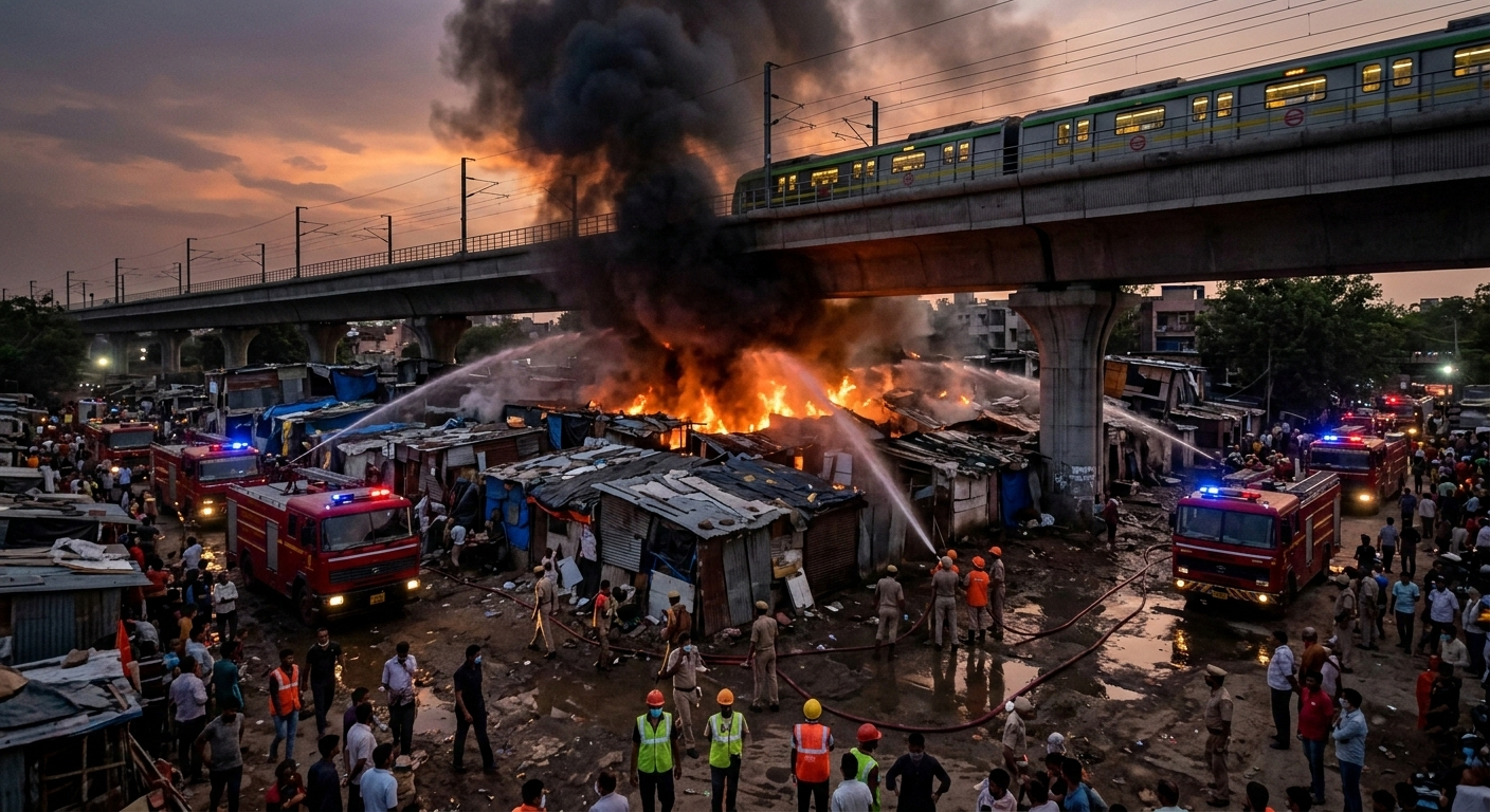 राजधानी दिल्ली के रिठाला मेट्रो स्टेशन के पास गुरुवार (5 मार्च) सुबह झुग्गियों में भीषण आग लगने से इलाके में हड़कंप मच गया। आग इतनी तेजी से फैली कि देखते ही देखते कई झुग्गियां इसकी चपेट में आ गईं। इस घटना में करीब 50 झुग्गियां जलकर खाक हो गईं। हालांकि राहत की बात यह रही कि इस हादसे में किसी के हताहत होने की खबर नहीं है।