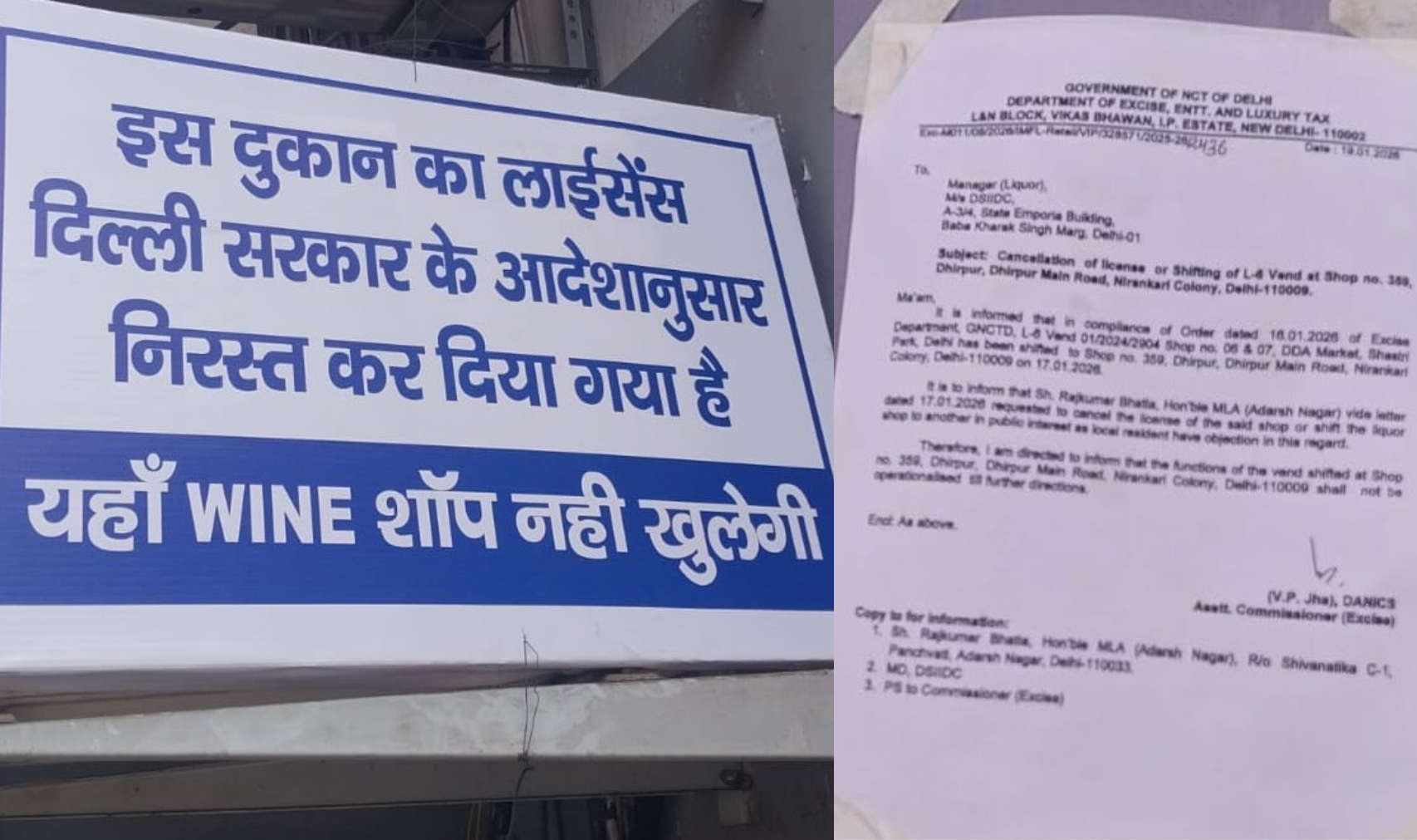 नई दिल्ली: आदर्श नगर विधानसभा क्षेत्र के धीरपुर गाँव और निरंकारी कॉलोनी के निवासियों के लिए राहत भरी खबर है। स्थानीय लोगों और सामाजिक संगठनों के कड़े विरोध के बाद क्षेत्रीय विधायक राजकुमार भाटिया ने प्रस्तावित शराब के ठेके को खुलने से पहले ही बंद करवा दिया है।